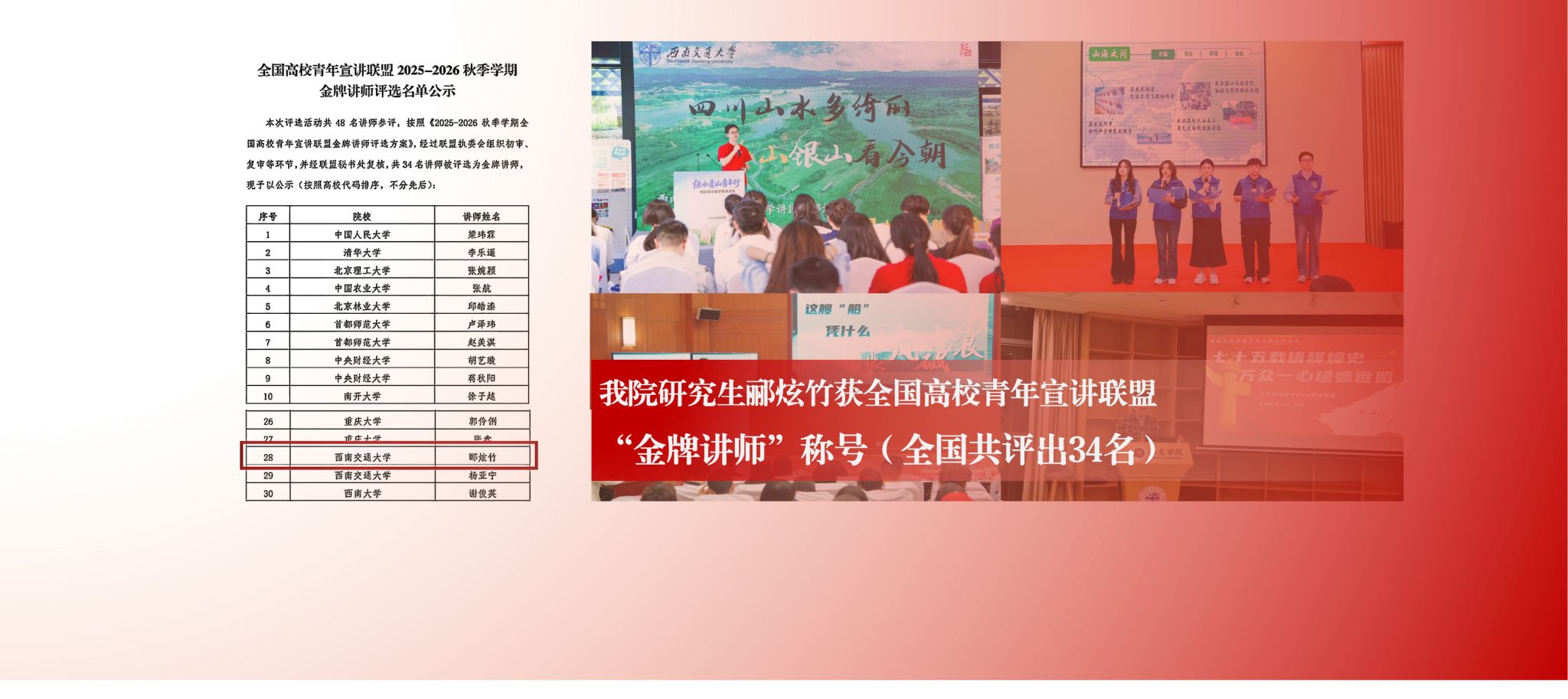 关于2025年西南交通大学“第三届实验室安全微视频创作大赛”获奖名单公示