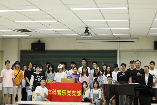 在建党100周年来临之际,为弘扬爱国主义精神,本科音乐党支部充分发挥自身专业优势为党庆生。于2021年6月9日19:00在音乐系音专一教室开展了普及红色歌曲及基础乐理的公开课。