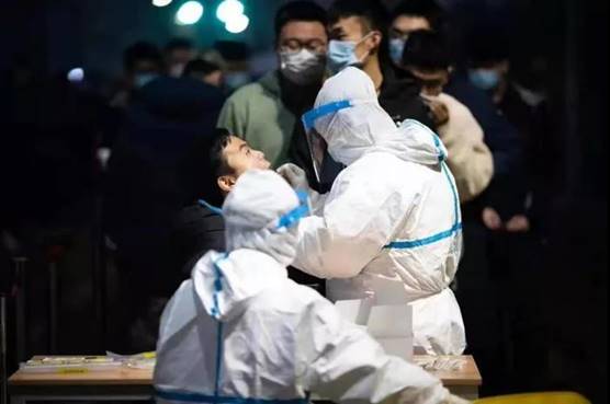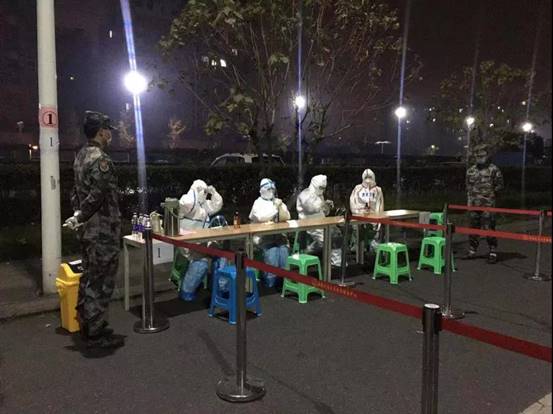 辅导员们通宵组织学生参加核酸检测。这些辅导员们有的驱车24公里才回学校,有的放下了家中嗷嗷待哺的幼儿,有的放下了手上正在修改的答辩稿。