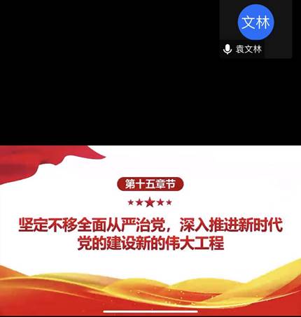 首先,袁文林重点讲解了过去五年的工作和新时代十年的伟大变革,并强调了新时代十年的伟大变革的里程碑意义。又指出“马克思主义是我们立党立国、兴党兴国的根本指导思想,要开辟马克思主义中国化时代化新境界”。接着从“加快构建新发展格局,着力推动高质量发展”、“实施科教兴国战略,强化现代化建设人才支撑”、“发展全过程人民民主,保障人民当家作主”、“ 坚持全面依法治国,推进法治中国建设”、 “增进民生福祉,提高人民生活品质”、 “坚定不移全面从严治党,深入推进新时代党的建设新的伟大工程”等方面进行了深入讲解。