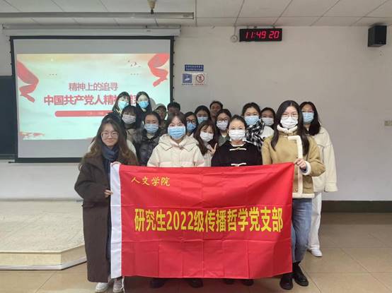 研2022级传播哲学党支部组织委员刘娄和支部党员简羽主讲,支部全体成员参与。