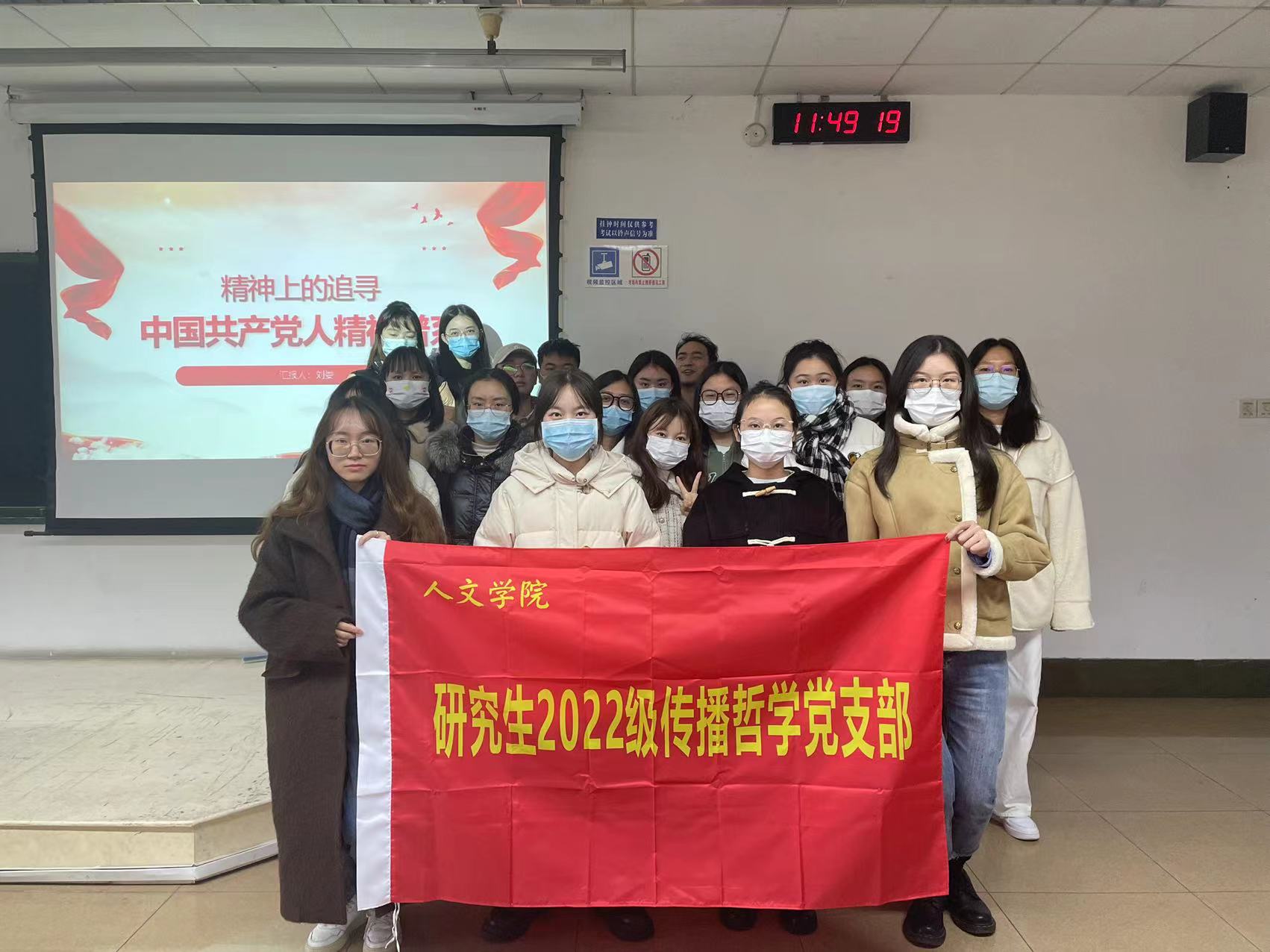 党建引领,理论先行。理论学习是夯实思想的根基,研2022级传播哲学党支部高度重视各项理论学习,并始终将建设学习型党组织作为重要工作。按照项目要求,支部围绕以建党精神为源头的“中国共产党人的精神谱系”展开学习,通过线上线下结合的方式,重点学习红旗渠精神、抗震救灾精神、新时代北斗精神、女排精神、脱贫攻坚精神等伟大精神。