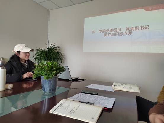 最后,学院党委副书记郭立昌同志对支部本次组织生活会暨民主评议会进行点评和总结。郭书记指出批评与自我批评的目的是为了认识自我,改善自身不足,此次会议中党支部成员的批评与自我批评虽然诚恳、认真,但对问题的发现总结都比较片面,认知也停留于表层,未来还应该更深度、更多方位地进行挖掘总结。郭书记此外还关心了支部成员的专业学习情况,并给出了在职业生涯规划上的建议,希望支部成员能够在新的一年明确奋斗目标,继续学习理论知识,提高自身实践能力。
