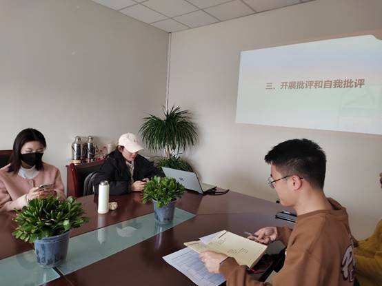 其次,袁文林同志通报了查摆问题清单,阐述了支部现如今存在的问题,并提出了具体的整改措施。第一,结合支部党员各自的实际学习情况,在一年的支部活动安排中,上下半年进行详略得当、区分性开展,让支部成员都能尽可能地参与进来;第二,2023年度开始尝试走出教室,以各种室外实践方式开展党支部活动,寓教于乐的同时加强支部内部的凝聚力。