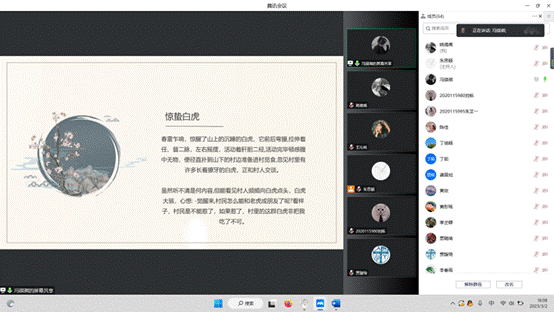 第二小组由冯琪祺同志作为主讲人向大家分享“惊蛰”的故事传说。冯琪祺同志着重介绍了“惊蛰吃梨”、“惊蛰龙抬头”、“惊蛰雷公”、“惊蛰白虎”等四个故事,她向大家生动讲解了这些传说的起源和发展流传情况,让同学们深入了解了异彩纷呈的“惊蛰”故事传说。