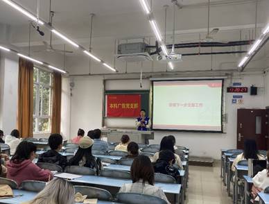 会议最后,支部书记袁文林同志对本次会议进行总结。首先他对于支部日常工作安排方面提出了要求,其中他着重强调了各支部同志在新闻写作时应严格遵守相关规范,紧跟时代潮流,关注时事政治,参照新闻规范和条例,在新闻宣传和报道上严格把关。最后,他表示希望各支部成员能够利用好本科广告党支部这一平台,努力学习党的理论政治知识,不断加强党性修养,积极参加组织生活,自觉履行党员义务。