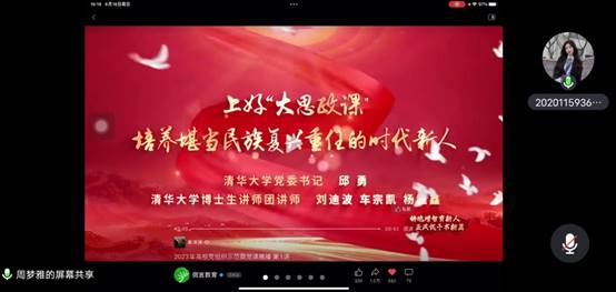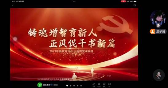 为深入开展学习贯彻习近平新时代中国特色社会主义思想主题教育,2023年6月18日下午4时,本科广告党支部全体成员以腾讯会议的方式集中收看了“铸魂增智育新人正风促干书新篇”2023年高校党组织示范微党课第一讲。