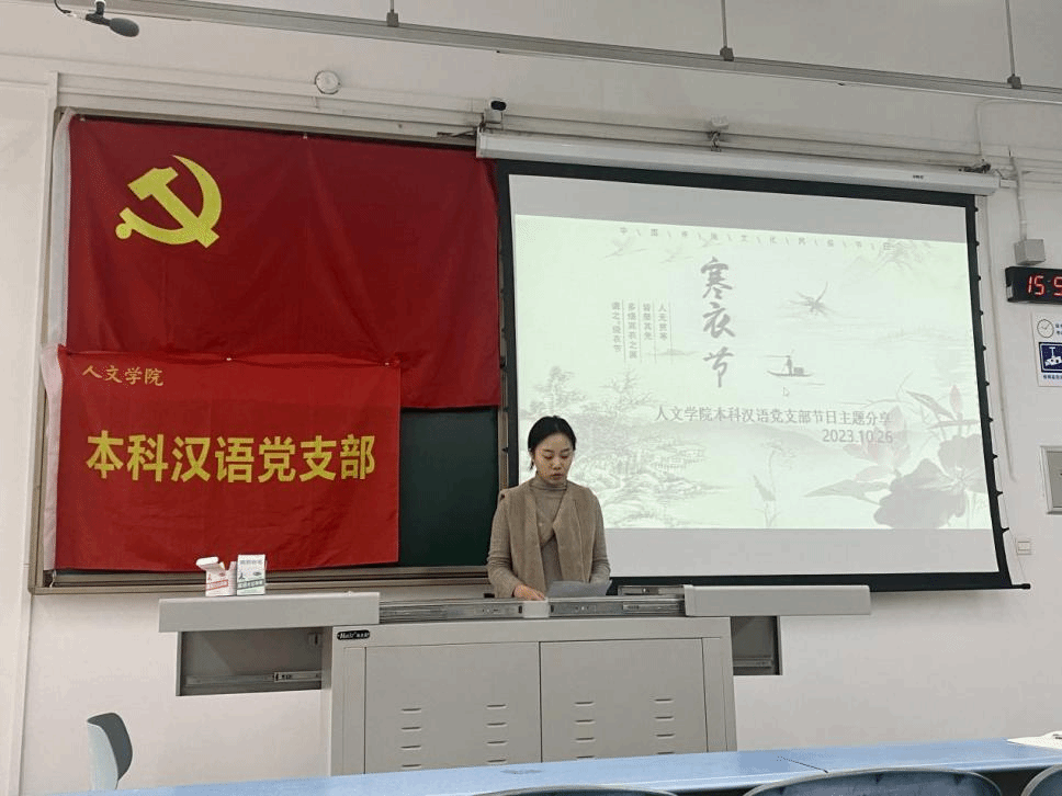为进一步深化支部成员对于中华传统节日的内涵领会,弘扬中华优秀传统文化,2023年10月26日下午3:50,本科汉语党支部在X2226教室开展了中华传统节日分享之“寒衣节”主题分享活动。本次活动由满珍明同志主持,支部全体成员参加。
