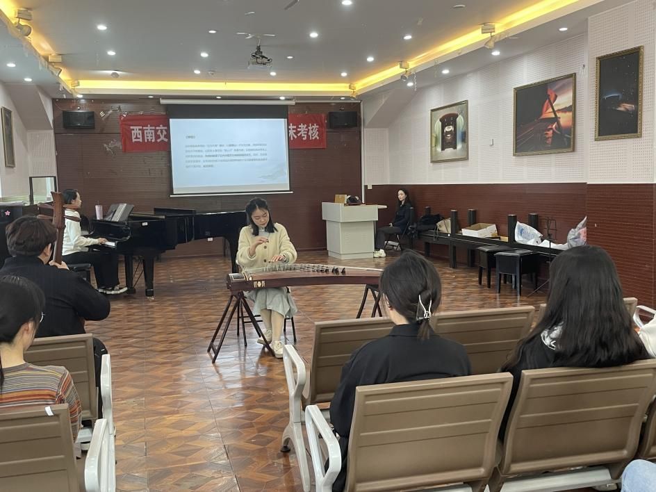 随后,赵启轩同志为大家介绍了中阮的历史和基本构造,并演奏曲目《满江红》,该曲目以抗金名将岳飞的故事为主题,气势磅礴,引人入胜。