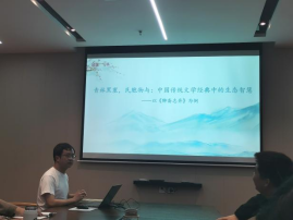 博士党支部宋茂儒以《聊斋志异》为例探究中国传统文学经典中的生态智慧,指出倡导“天地与我并生,而万物与我为一”的“天人合一”思想是中华文明的鲜明特色和独特标识,生态不仅仅指代一种静态稳固的生态理想,更具有多元开放的意义,指向种种不断生成的现实生态问题。博士党支部金玉卓谈《红楼梦》的索隐和考证,指出国学不是书斋里的学问,古典语言文献学重构了文化传统,将最伟大的、得以幸存的作品更为清晰地展现出来,考证和索隐背后对应着现代学界接续经学传统、构建“中华文化共同体”的群体诉求。