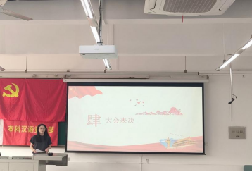 紧接着进行大会进行第二项议程,补选支部委员。会议选举2021级曾品贤同志为支部副书记,2021级满珍明同志为支部组织委员,2021级张媛同志为支部纪检委员。