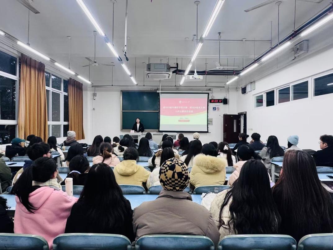 研2023级传播哲学党支部联动研2024级党支部在犀浦校区X2227教室开展12月主题党日活动。此次学习的主要内容有:深入学习贯彻党的二十届三中全会精神、《关于进一步加强和改进流动党员管理工作的意见》、习近平新时代中国特色社会主义思想、考试诚信教育与学术经验交流。本次会议由研2023级传播哲学党支部书记张馨月同志主持,各支部成员进行了深入学习与交流。