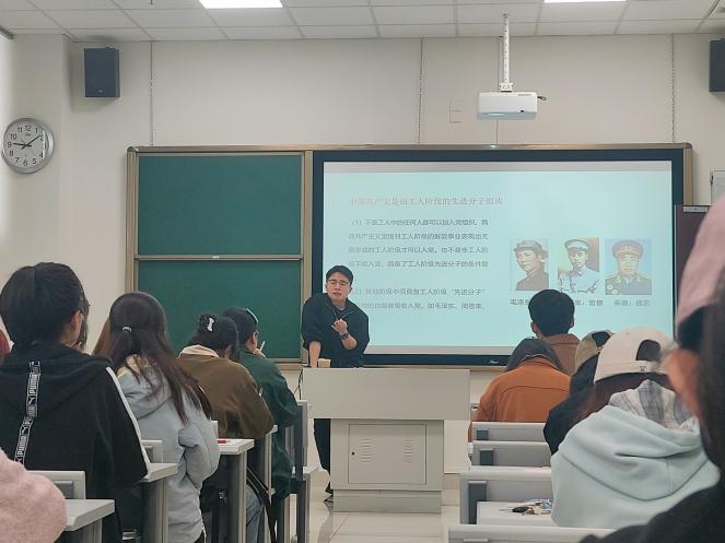 刘爽同志通过毛主席“落后就要挨打”的名言和丰富的案例鼓励同学们要积极学习党的光辉历程,认清中国特色社会主义的历史方位,深入学习贯彻习近平新时代中国特色社会主义思想,勉励入党积极分子们向优秀党员看齐,严格要求自己,力争做好表率,做符合新时代要求的优秀青年。