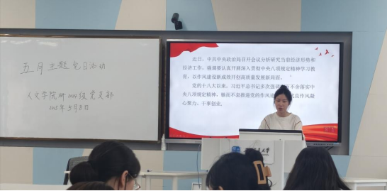 研2024级党支部在九里校区J4204召开5月主题党日活动。本次活动由文薪雅同志主持,支部成员和入党积极分子参与本次学习。