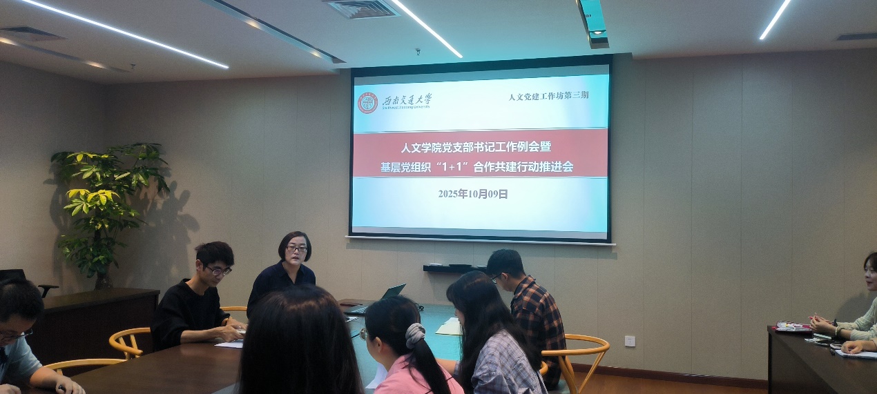 于2025年10月9日在31004教室召开“党建工作坊第三期——党支部书记(委员)工作例会暨基层党组织‘1+1’合作共建行动推进会”。学院各党支部书记、支部委员参会,并就共建行动路径展开深入研讨。