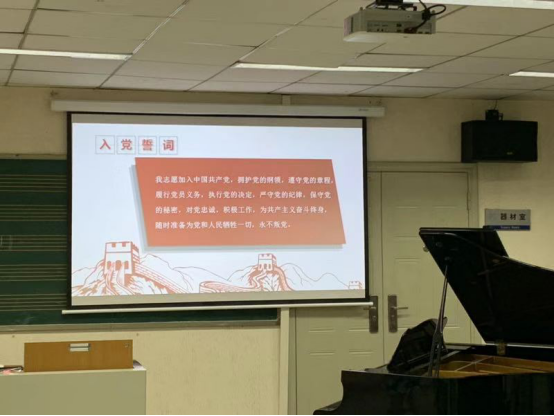 最后,胡红同志带领音乐支部党员重温入党誓词,弘扬爱国精神,抒发报国情怀。