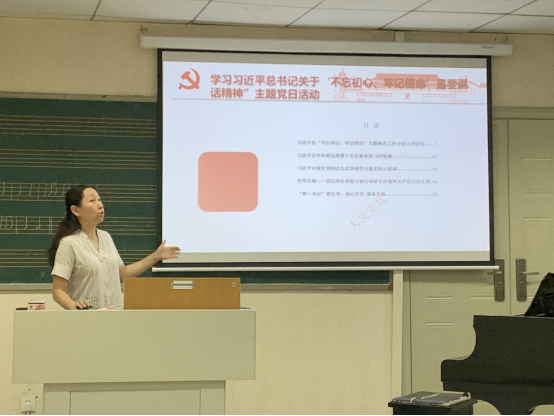 音乐教师党支部9月12日在音乐专业教室开展了学习习近平总书记关于‘不忘初心、牢记使命’重要讲话精神”主题党日活动,院党委委员、副院长胡红同志作主讲。