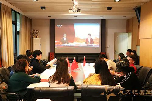 传播本科党支部在X8210观看庆祝中华人民共和国成立70周年大会暨阅兵式活动。本次活动由支部书记刘爽同志主持。