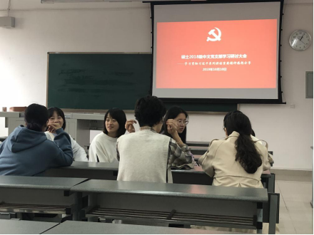 2018级硕士中文党支部开展学习“习近平在庆祝中华人民共和国成立70周年大会的系列讲话”讲党课活动和学习研讨大会