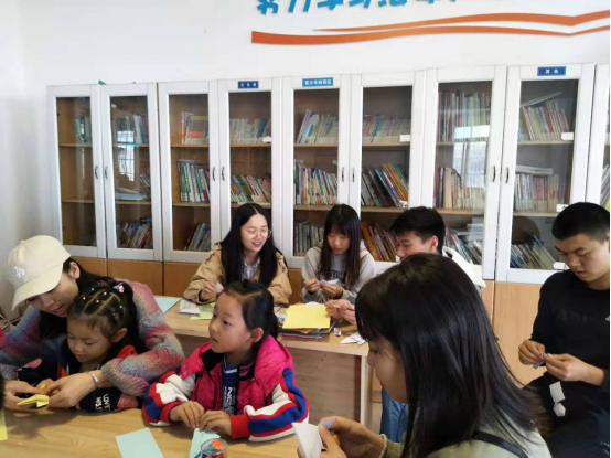 在手工教室里,四五个孩子围坐一桌,七嘴八舌地讨论着。桌上放着折纸的工具。志愿者们最开始向孩子们讲述如何折飞机,小朋友们听得可认真了,时不时还冒出自己的想法。志愿者和小朋友一次次不断尝试、不断创新,最后的成品当然也是有模有样。“回去我要教我的弟弟折”一位小朋友向志愿者们骄傲的展示她的手工。另外间教室时不时传出朗朗歌声,小朋友唱着属于05后的歌曲,志愿者们在台下为她们鼓掌、照相。志愿者们更像是听众,把舞台留给小朋友让她们尽情展示她们的才华。