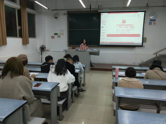 为贯彻落实习近平总书记“不忘初心、牢记使命”重要讲话精神,学习党的十九届四中全会精神。11月15日晚6:30,在X1218教室,2018级硕士传播哲学党支部开展了“不忘初心,牢记使命”主题党课教育活动,支部在校党员及积极分子参加,此次活动由支部书记李倩主持。