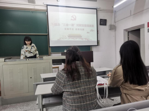 广告党支部“结合‘三会一课’对照党章找差距、发现不足、自我完善”主题党日活动在X8524教室举行。本次活动由池茜同志主持,以学习党章党规和“三会一课”为主要内容,旨在将党的纪律建设的理论、实践和制度创新成果切实传达,为青年党员同志凝心聚力践行初心使命奠定基础。