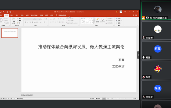 2020年6月17日下午4:00, 包子漫画 院长、党委委员石磊同志在腾讯会议给传播系教师党员上了一堂党课,主题是“推动媒体融合向纵深发展,做大做强主流舆论”。