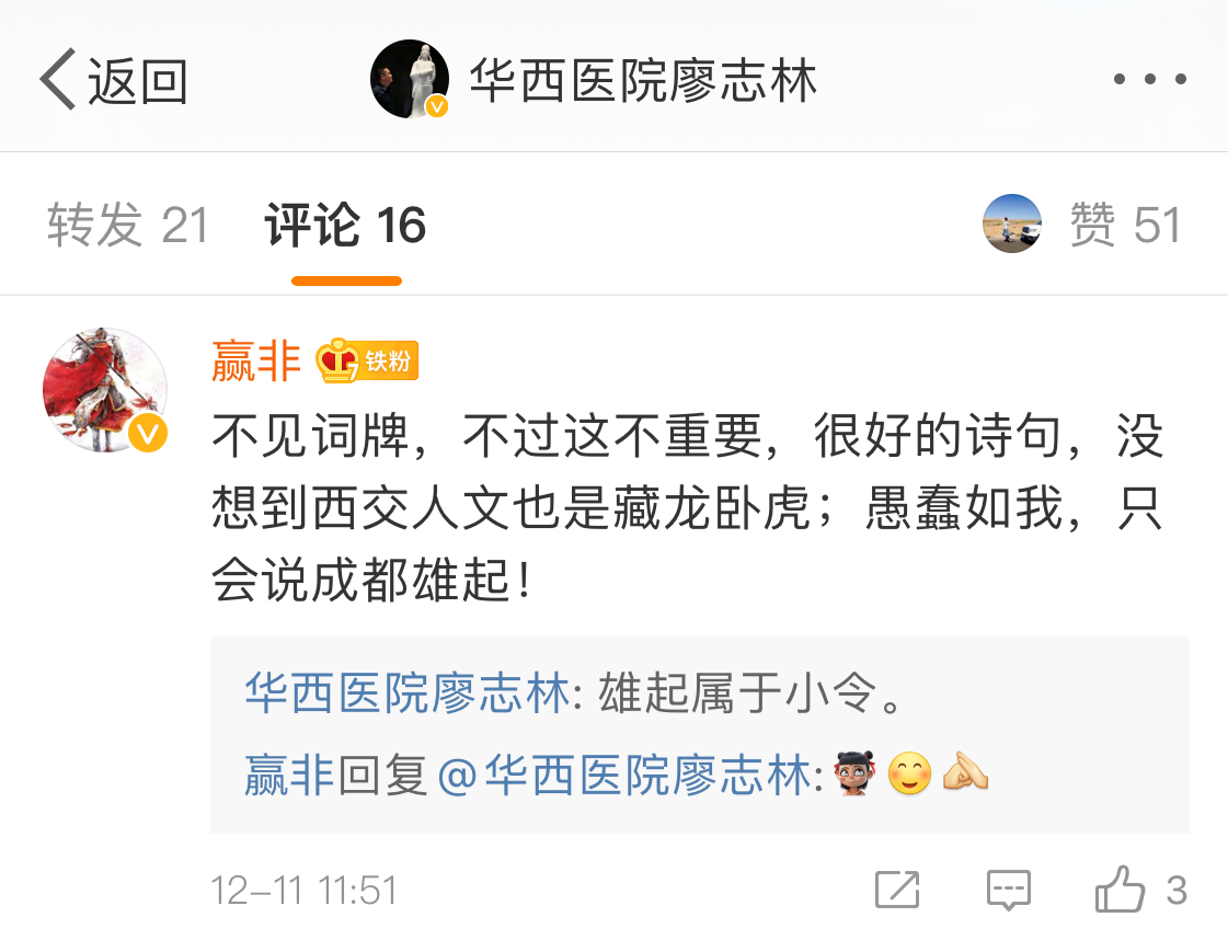 在交大师生的朋友圈里,在西南交通大学官方微博里,在华西医院“大V”、党委宣传统战部廖志林部长的微博里,流传着这样两首即兴创作的“献给最美逆行者”的诗: