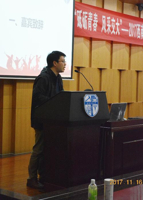 党委副书记兼学工组组长曹乔老师首先上台致辞。曹乔老师首先代表主办方学生工作部的负责老师向本场活动的顺利举行表示祝贺,并对兄弟院系对于活动大力支持配合表示衷心的感谢。另外,曹乔老师对获奖学生给予充分肯定并表示祝贺,号召在座交大学子以先进为榜样,砥砺奋斗,为交大争光。随后进行颁奖仪式。茅以升学院党委副书记王霞老师、曹乔老师分别为十位“风采之星”和十二位“优秀奖”获得者颁奖。