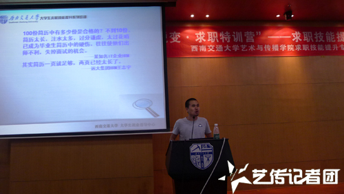 6月9日晚19:00,面向2016届艺传学院毕业生的“求职技能提升”培训第二场,也是最后一场在图书馆一号报告厅开始。艺传学院老师王丹老师和罗乐老师分别主讲了“求职心理”和“简历制作”相关知识,艺传学院全体大三学生作为听众出席了本次培训会。
