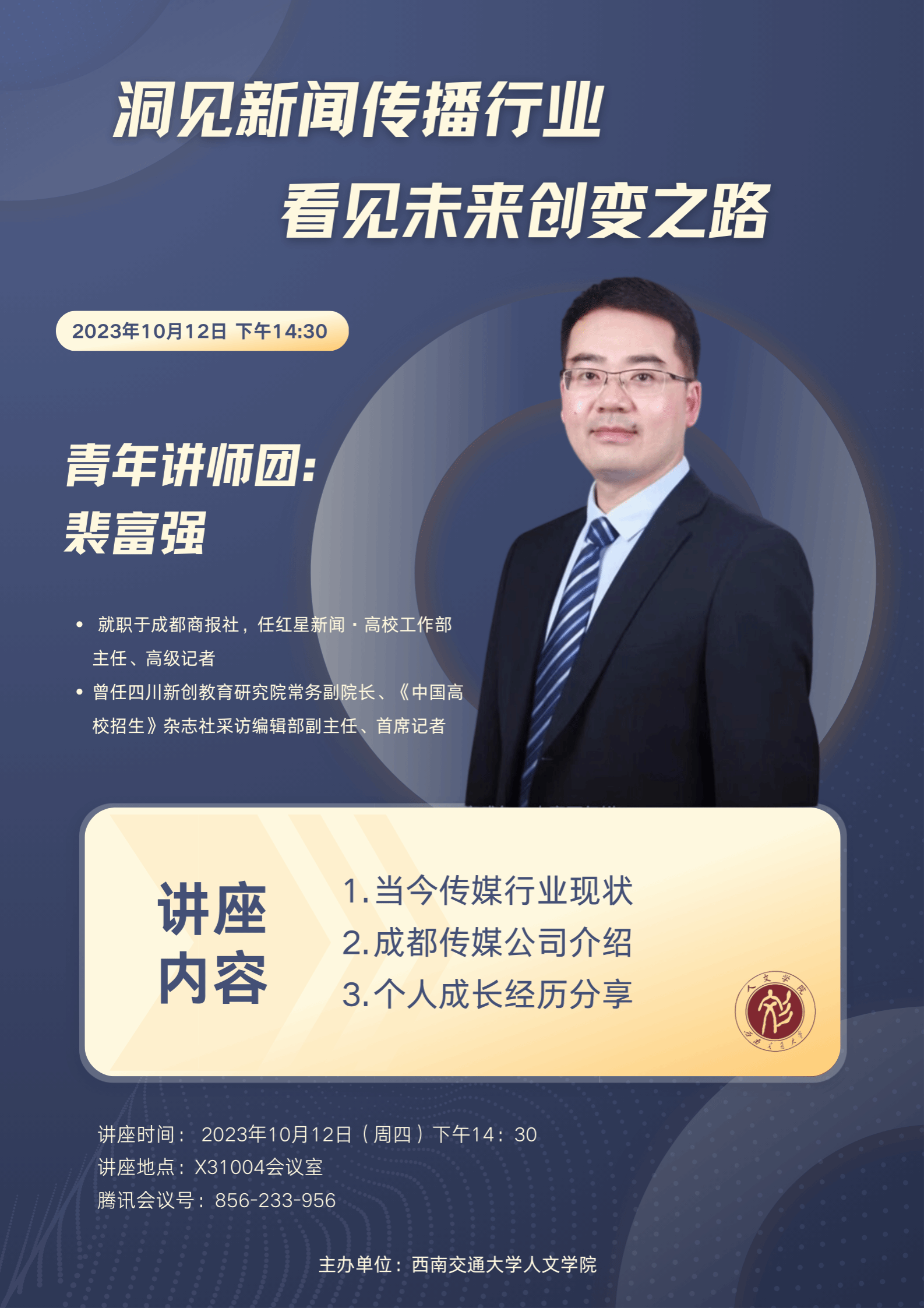 讲座地点:西南交通大学犀浦校区X31004会议室