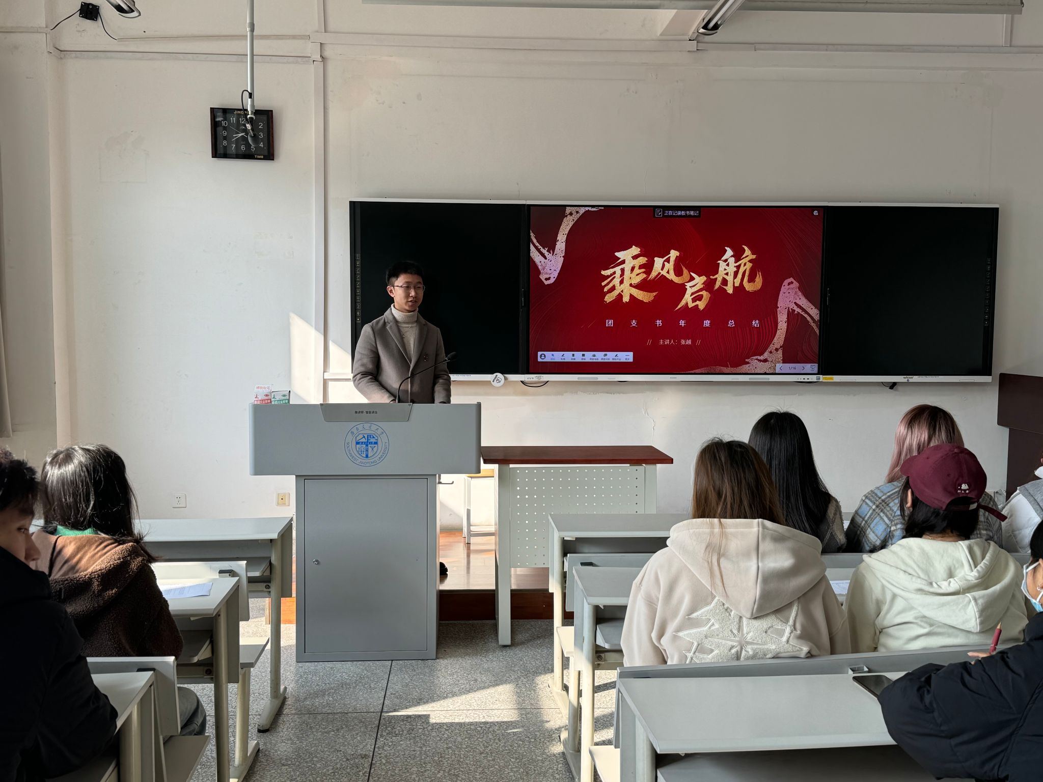 新传2023级1班团支书张越对自己在过去一年中的成长与收获进行了反思。他谈到,在院团委、辅导员的指导与帮助下,在班委和班级同学们的团结协作下,做到了与同学们共同适应新环境,共同成长。通过一个学期的实践与锻炼,自己也充分培养了语言组织能力、沟通理解能力及统筹规划能力,同时个人的骨干素养、思想素养、业务能力以及综合能力都得到了相应提升。