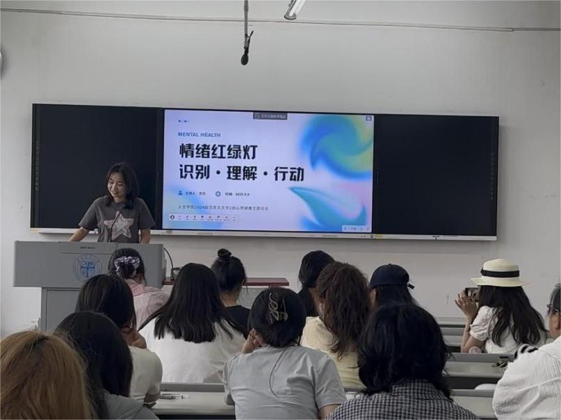 24级汉语2班开展的班会主题为“情绪红绿灯”,在班会上设计了一套完整的情绪管理训练体系。通过“情绪实验室”环节,同学们学习识别和命名复杂情绪;在“认知工作坊”中探索情绪背后的自动思维;最后通过“行为演练场”实践情绪调节技巧。