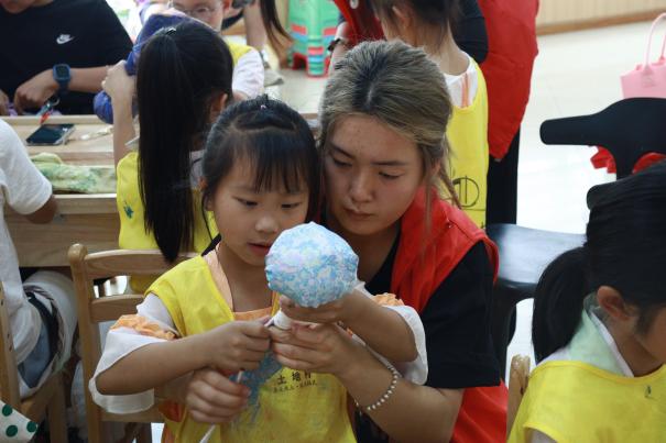 在实践环节中,志愿者带领孩子们亲手制作艾草锤。从填充艾草、揉捏定型到缠绕棉线,孩子们在志愿者的指导下逐步完成制作步骤,现场洋溢着欢声笑语。一只只小巧精致的艾草锤不仅让孩子们体验到传统手工艺的乐趣,更成为传递健康与祝福的载体。活动结束后,孩子们兴奋地表示要将亲手制作的艾草锤带回家送给长辈,传递孝心与温暖。