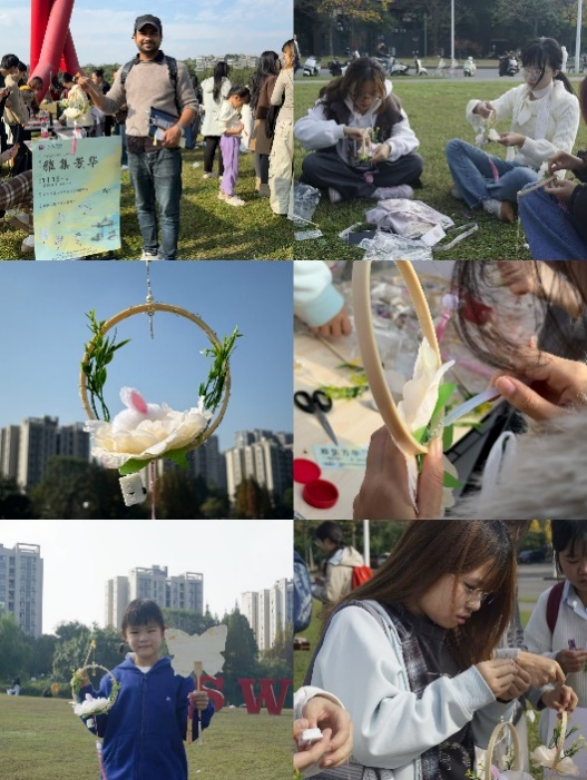 花灯则是承载团圆、祈福寓意的民俗符号,其融合剪纸、编织、竹艺等多重非遗技艺,历史可追溯至汉代。活动中,志愿者指导同学们扎竹架、穿灯线,大家互帮互助、乐在其中,一个个承载美好期许的兔子花灯逐渐成型。值得一提的是,外国友人也积极参与,在生疏却认真的操作中感受中华民俗的暖意,让花灯文化跨越国界实现自然传递。这一环节不仅让师生体验了传统手工的乐趣,更让非遗技艺在实践中完成情感联结与文化传播。