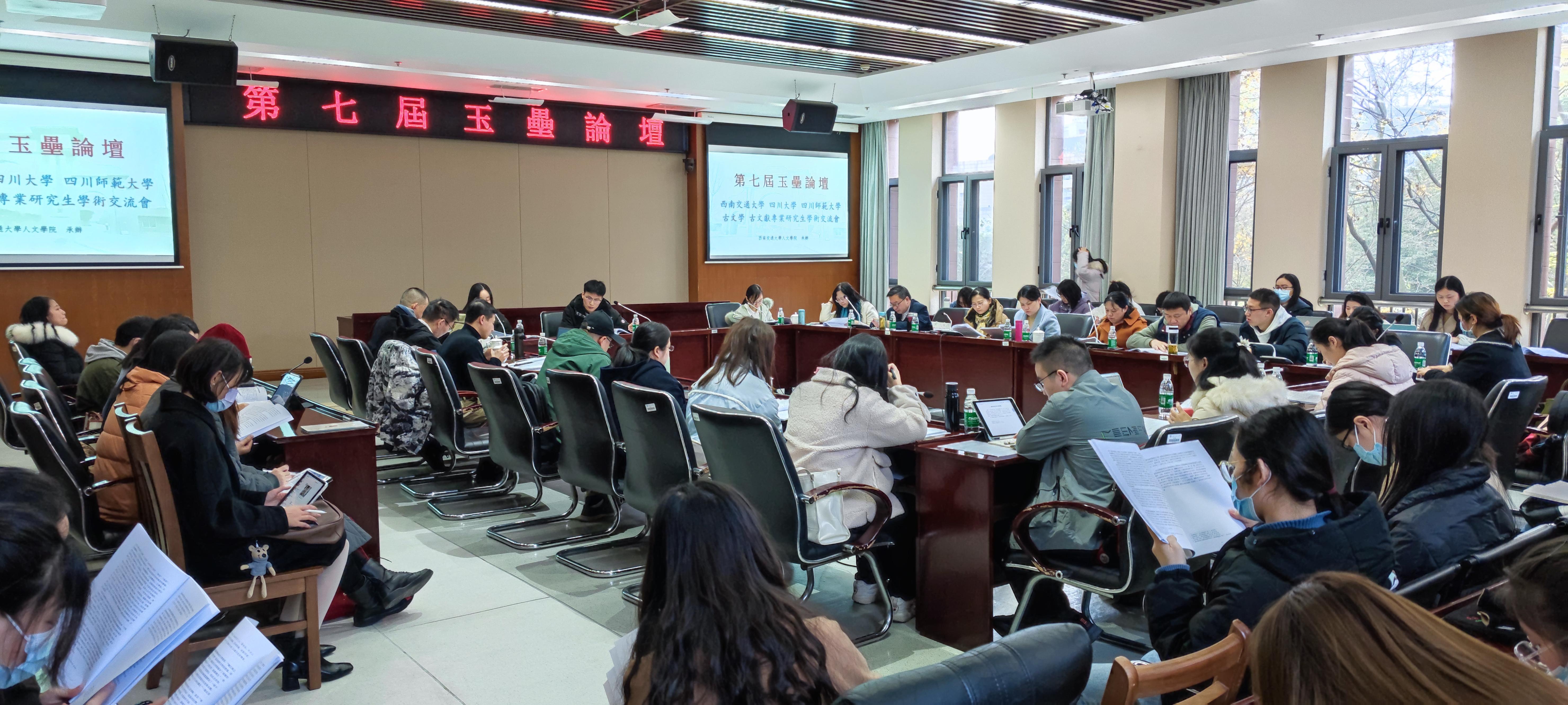 承办的第七届玉垒论坛在犀浦校区综合楼272会议室顺利举行,来自西南交通大学和四川大学、四川师范大学的中国古代文中国古典文献学专业的博硕士研究生和老师共80余人参与了此次学术交流会。
