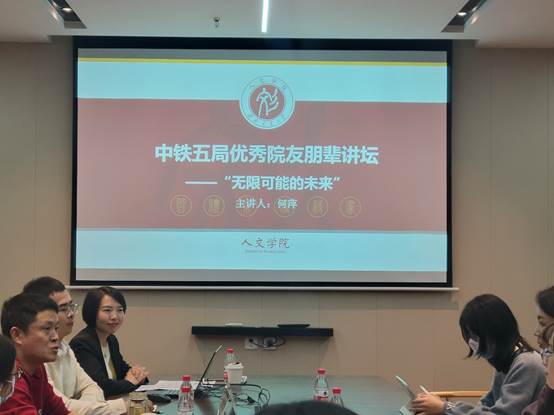 在交流环节,同学们积极踊跃地发言,向何副部长交流关于就业的相关问题,何副部长耐心地一一为同学们做出解答。讲座最后,向仲敏书记援引《论语·先进篇》中孔门四科进行了总结,认为中铁五局的用人标准与孔子的选人标准遥相呼应,鼓励同学们进德、求学、修业,到社会的熔炉中去锻炼自己。何萍副部长也祝福同学们路越走越宽,拥有美好的明天。