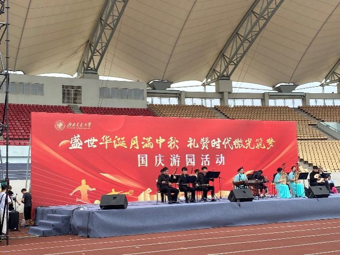 音乐系优秀学子在舞台上的精彩演出,体验了新颖有趣的活动项目,参加活动的师生在欢乐喜庆的氛围中热情交流,增进友谊。