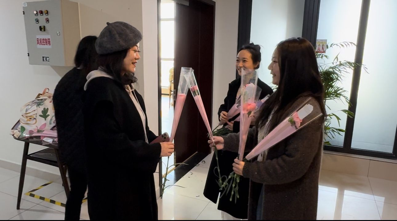 为庆祝国际妇女节, 包子漫画 工会联合传播本科党支部、音乐本科党支部的同学们,通过手写祝福卡片、鲜花赠送的方式,为全体女教师们送上节日的祝福。