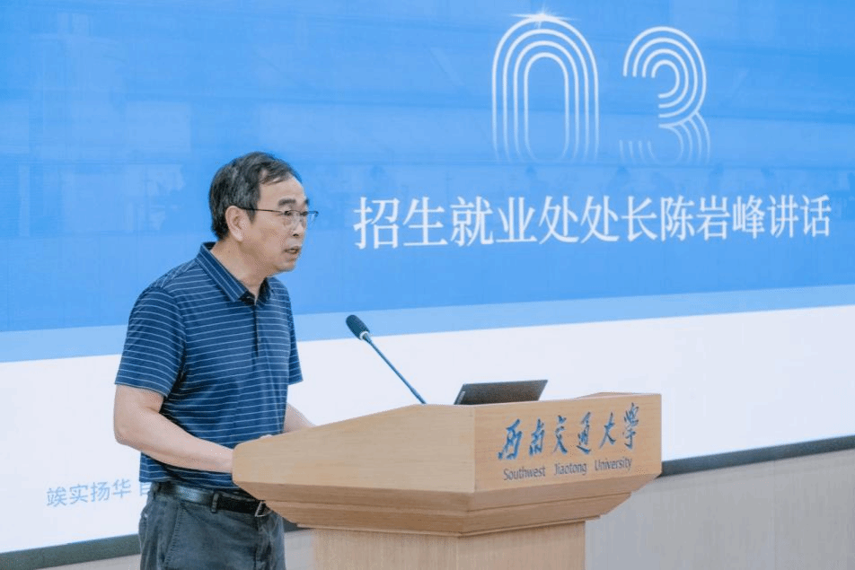 之后,招生就业处处长陈岩峰作了总结动员讲话。他深入分析了当前就业形势、考研形势和学校考研工作的总体情况,对即将考研的2025届同学进行鼓励,提到了同学们要充分利用各学院提供的优质资源和平台,不断提升自己的综合素质和能力水平。