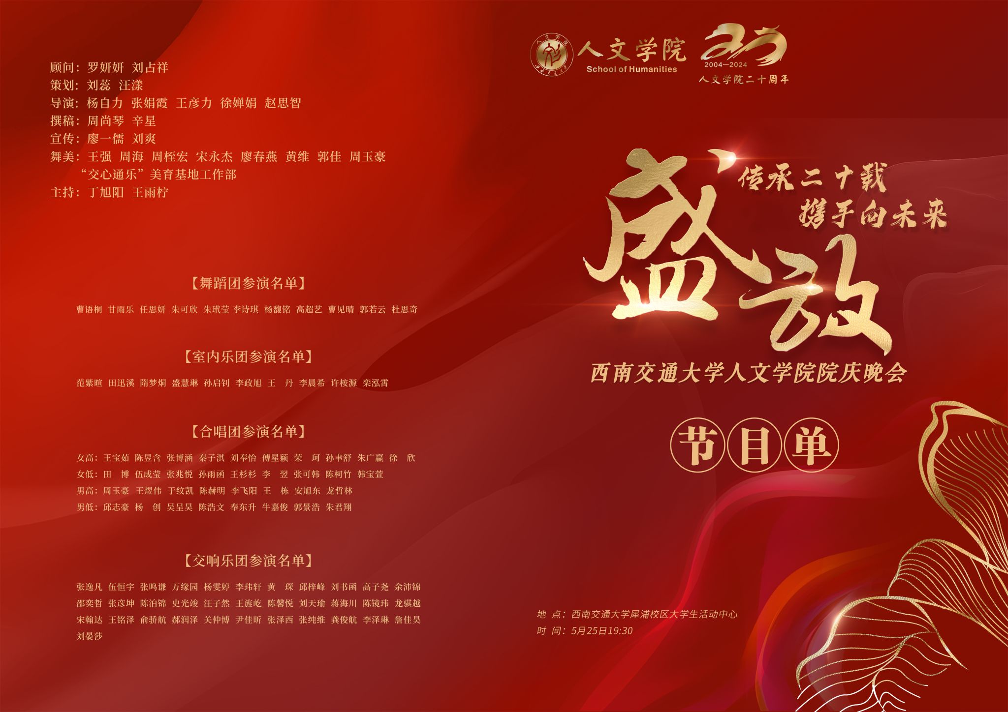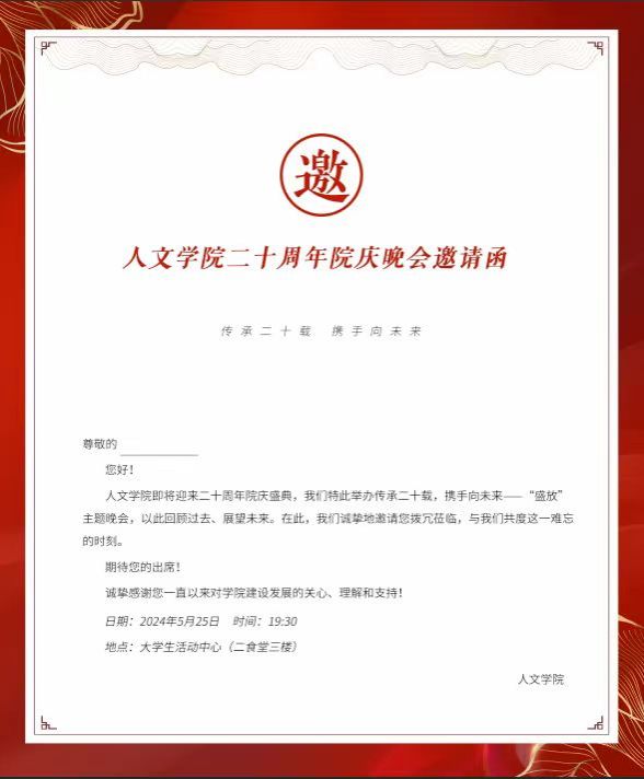 二十周年院庆晚会的盛大开幕,相信它将成为学院历史上又一个值得铭记的时刻,也将激励着每一位人文人继续在人文的道路上砥砺前行,续写辉煌!