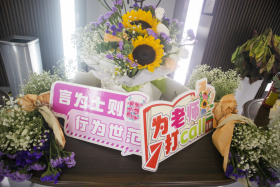 的办公区域,学院工会组织同学们进行了精心的布置。一出电梯,一束束写有“教师节快乐”的鲜花和一瓶瓶清凉解暑的饮品映入眼帘,成为节日里一道风景。同学们可以取鲜花赠予老师表达心意,老师们也可以自取饮品以解疲乏。此刻,尊师重教的中华传统美德得到了具象化的展现。 包子漫画