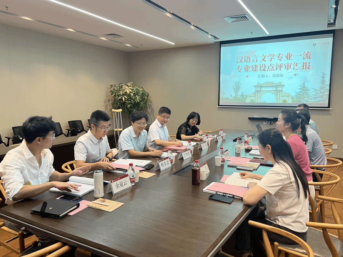 副院长余夏云组成评审专家组,对汉语言文学一流专业建设情况进行评审与指导。学院党委书记罗妍妍、院长刘占祥、副院长兼中文系主任沈如泉、副院长胡红出席会议。会议由党委书记罗妍妍主持。