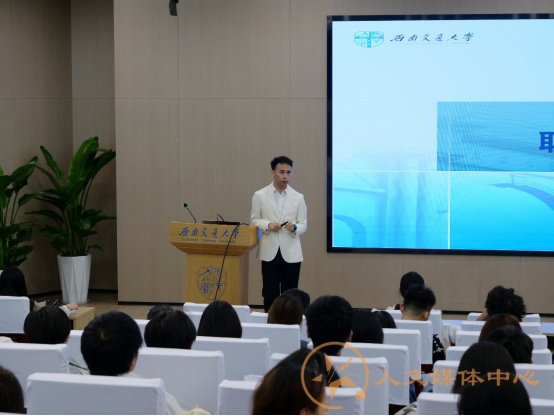 随后,郭老师对职业生涯与发展规划进行了定义,介绍了生涯规划的内容与步骤。郭老师还为同学们介绍了能力提升策略,包括三个部分——专业知识技能,可迁移技能,自我管理技能。“君子欲讷于言而敏于行。”郭老师希望同学们能利用能力提升策略,在日常生活中不断提升自己,在就业竞争中获得优势。