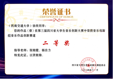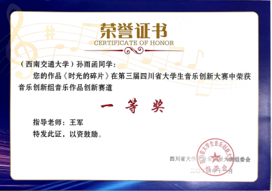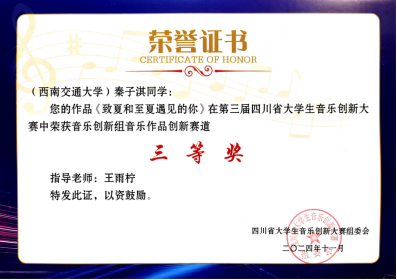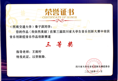 音乐表演专业的三位同学孙雨函、徐欣,秦子淇,分别获得“音乐创新组——音乐作品创新”类别的一、二、三等奖。