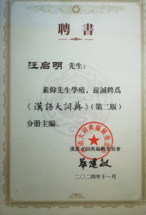 中华传统经典普及基地主任汪启明教授受聘担任《汉语大词典》(第二版)分册主编,并应邀参加本次会议。
