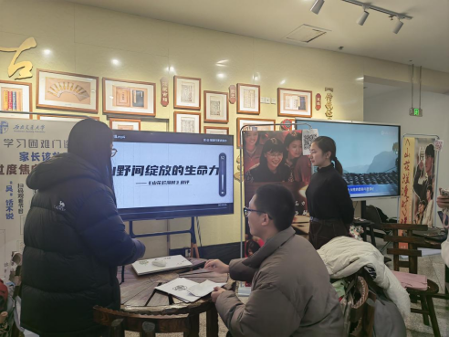 活动开展的过程中,评委老师们依次参观了各组同学们展示的作品,以互动问答的形式,深入了解了学生们的创作内容。同学们精心准备了各自的策划书、视频作业、新闻评论文稿等资料进行展示。评委老师们在仔细观阅的过程中,就作品制作过程的细节把控、结构的合理性以及创作思路的创新性等方面,与同学们进行了深入的探讨,并提出了许多宝贵的改进意见。
