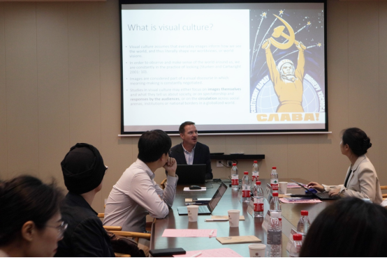 师生进行了专题讲座分享。Aidan McGarry教授的讲座围绕社交媒体视觉图像在环境运动中的影响力展开。Taeyoung Kim博士结合产业数据与案例,为在场师生介绍了韩剧在流媒体平台全球传播的现状以及传统电视行业面临的挑战。Anna Zsubori博士聚焦青少年与性别这一议题,就迪士尼童话的文化改编逻辑、全球化媒介如何影响青少年的身份建构等问题与在座师生进行了深入交流。