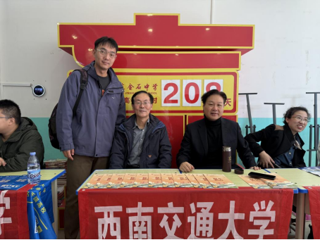 2025年11月12日至13日,西南交通大学受邀参加由河北日报文化传媒有限公司主办的“高校招考服务进校园”系列活动。活动期间,学校招生宣传组先后走访石家庄金石中学、藁城区第一中学、高邑县第一中学、石家庄联邦外国语学校、邢台追光高级中学等多所当地知名中学。