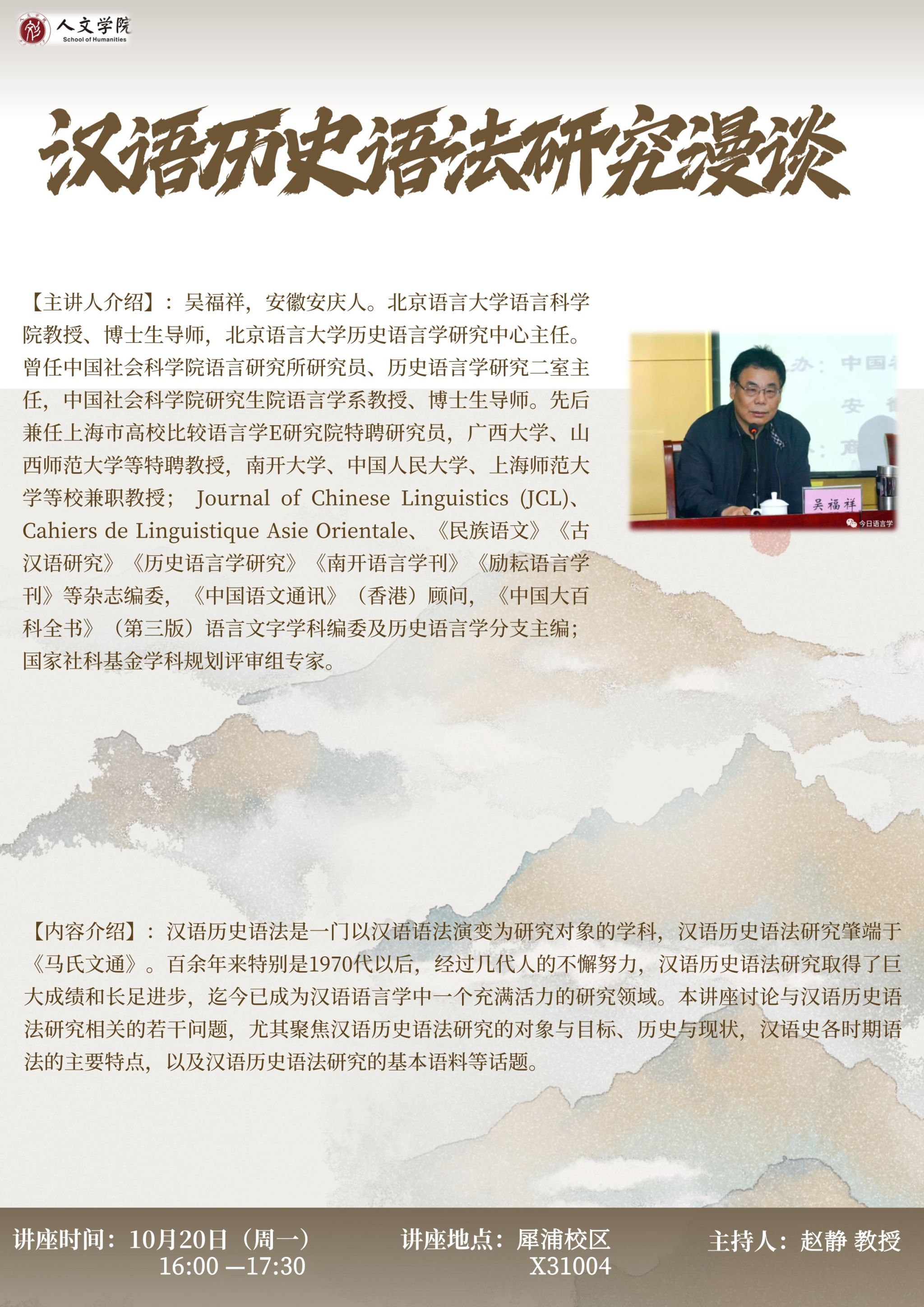 北京语言大学语言科学院 吴福祥教授
